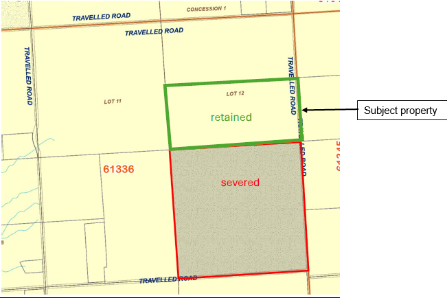 The map below illustrates the location of the subject lands municipally known as 118420 Sales Barn Road.
