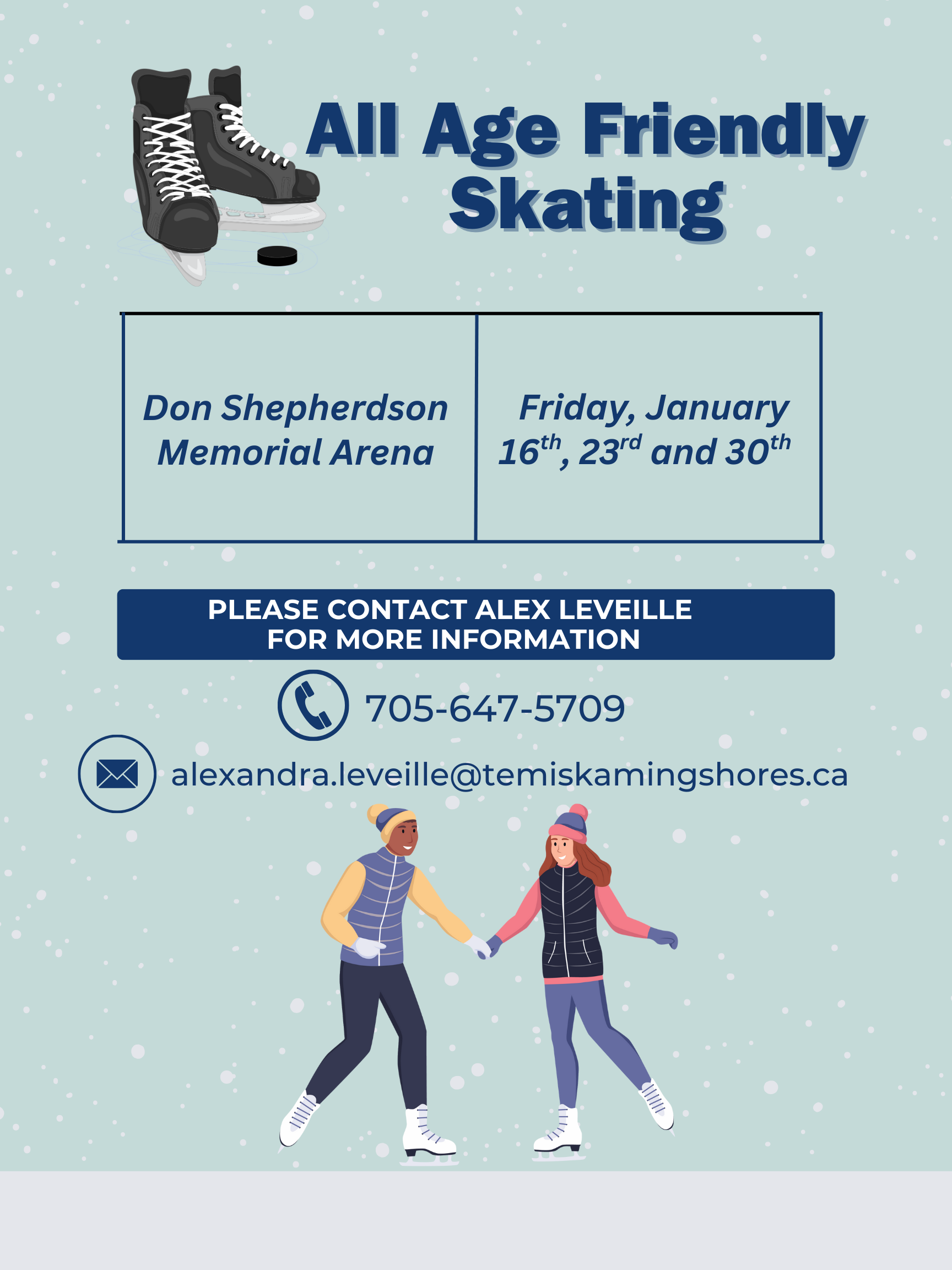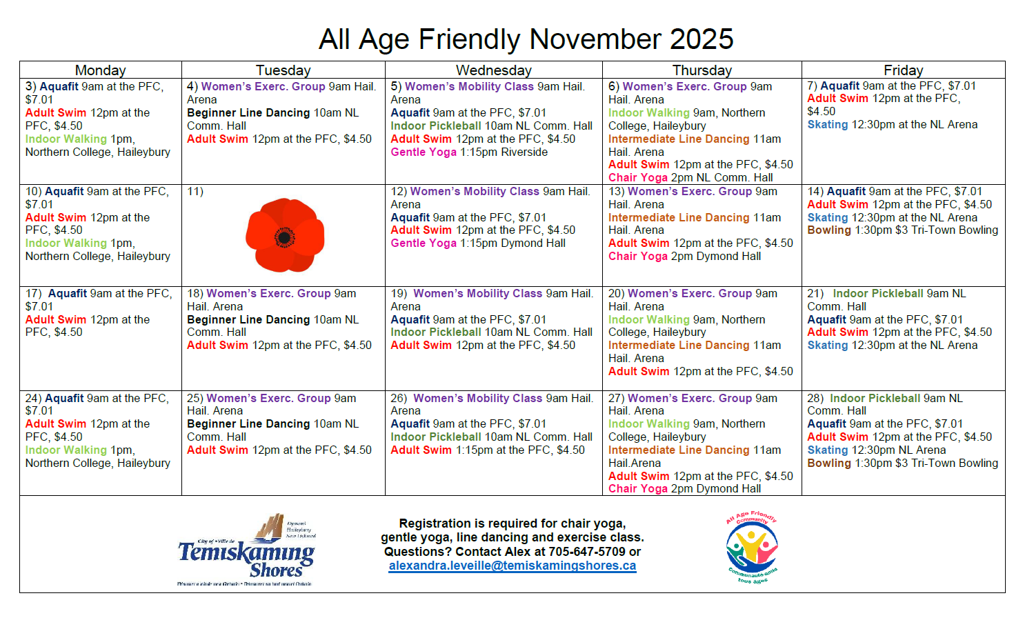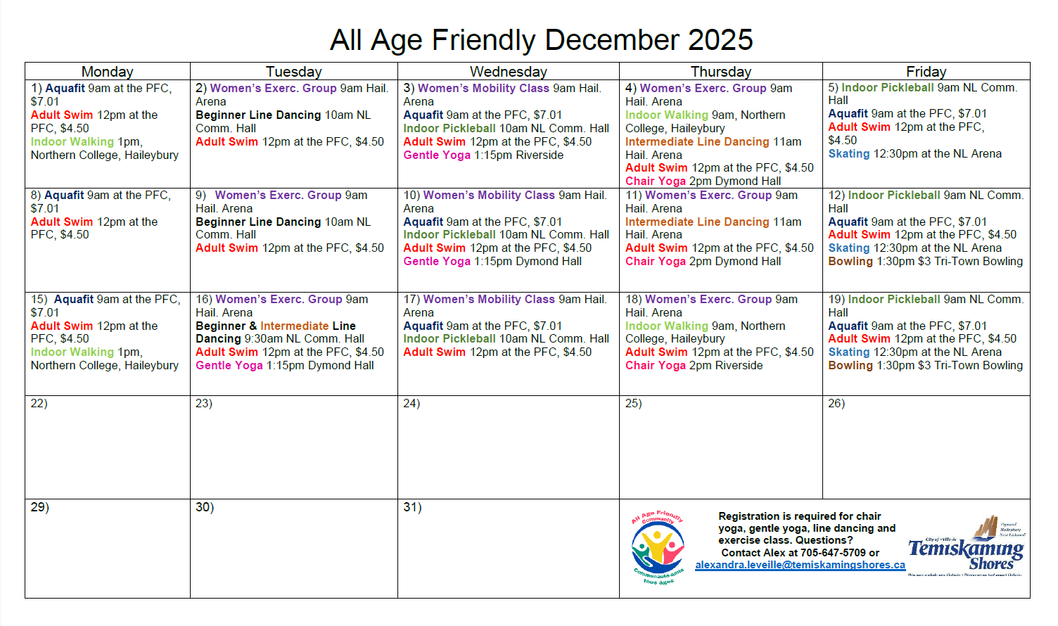 If you would like more information or would like to discuss the movement to make Temiskaming Shores more age friendly please do not hesitate to contact the City Age Friendly Coordinator, at any time.